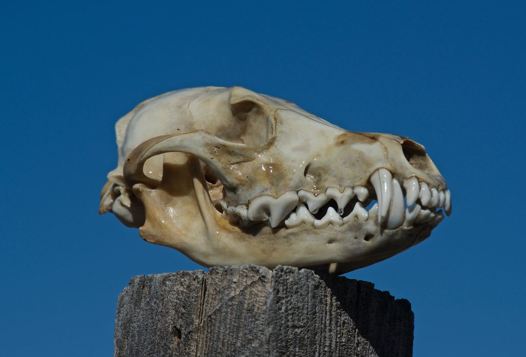 The jaw of a pure carnivore designed for biting, holding on, ripping and slicing flesh.